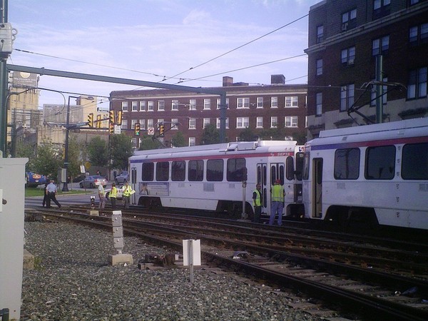 SEPTA is investigating a collision between two trolley cars that =