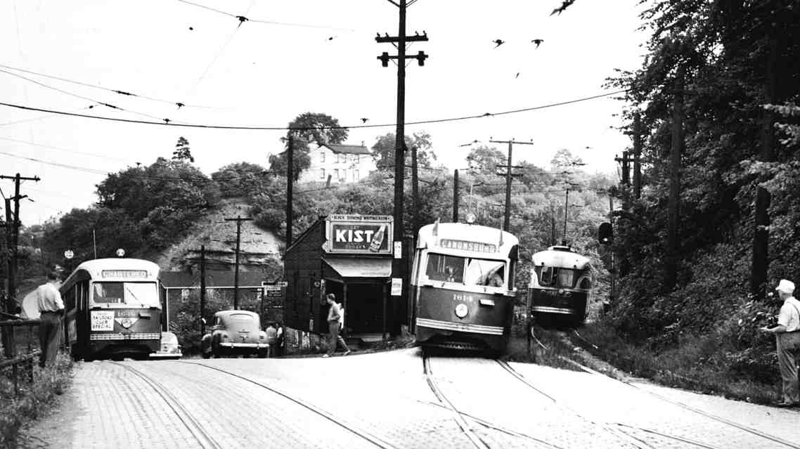 1614 was used starting from Washington interurban station. 1646 was added at Tylerdale because of overcrowding. The cars went north to Castle Shannon, backed around the loop, and went south. The procedure was reversed coming north from Charleroi.
