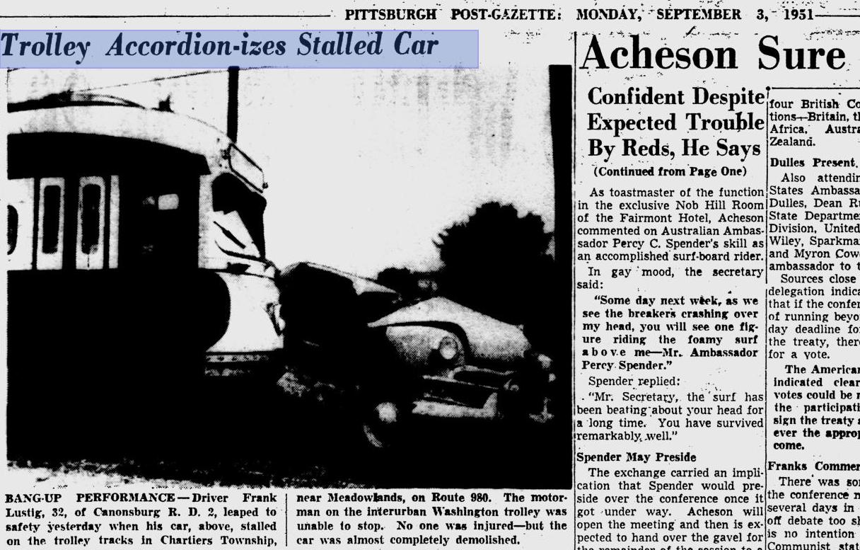 Luckily, no one was hurt. -- Attached file removed by Ecartis and put at URL below -- -- Type: image/jpeg -- Desc: Meadowlands_sept1951.JPG -- Size: 194k (199332 bytes) -- URL : http://lists.dementix.org/files/pittsburgh-railways/Meadowlands_sept1951.JPG