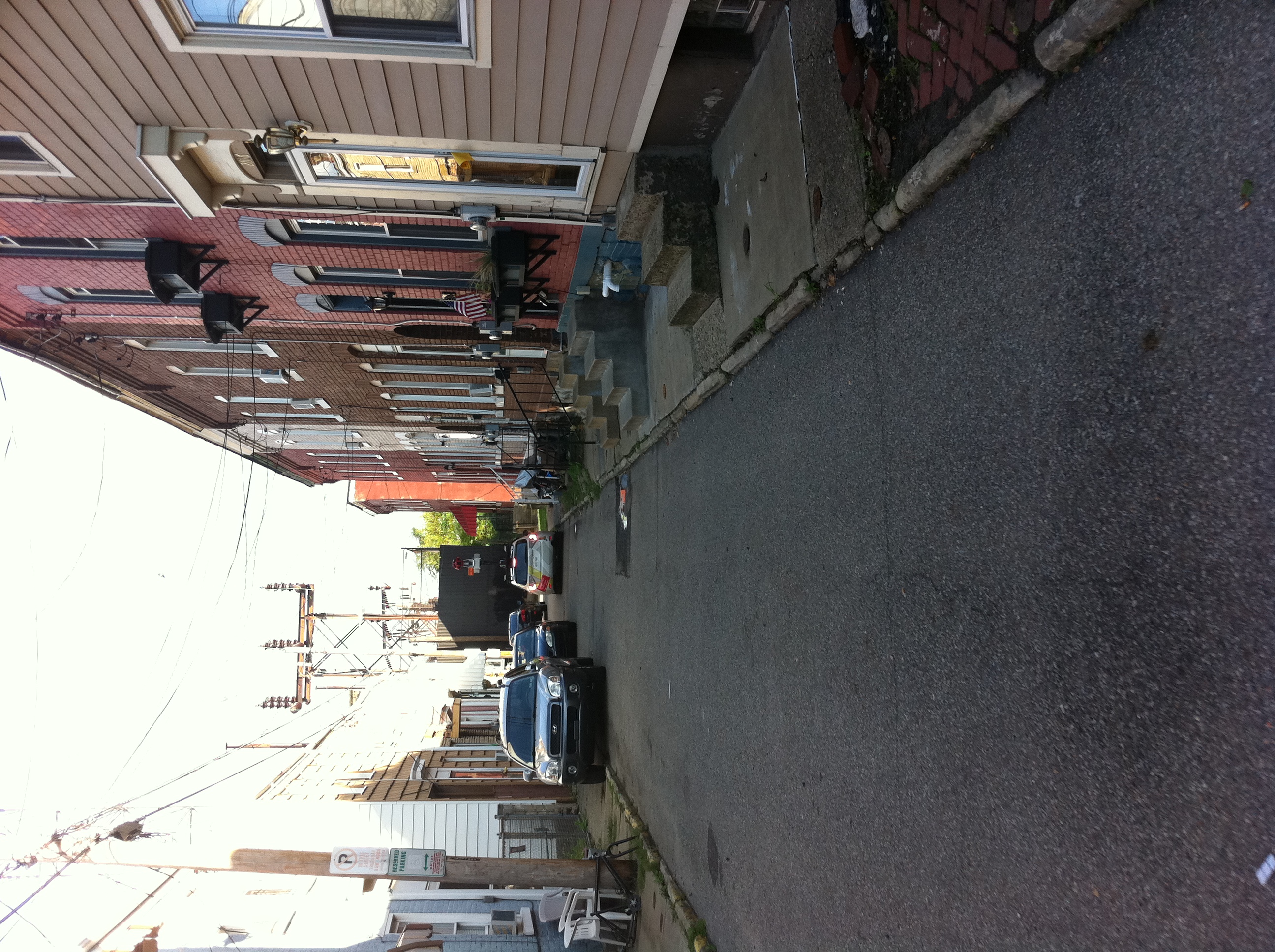 >he's gotten to the end of the alley, and I'm taking this shot with my cell phone, while biking along behind him.