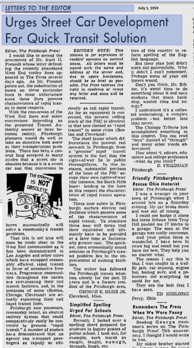 [PRCo] July 1, 1959 - Letter to the Editor - Urging Street Car Development
