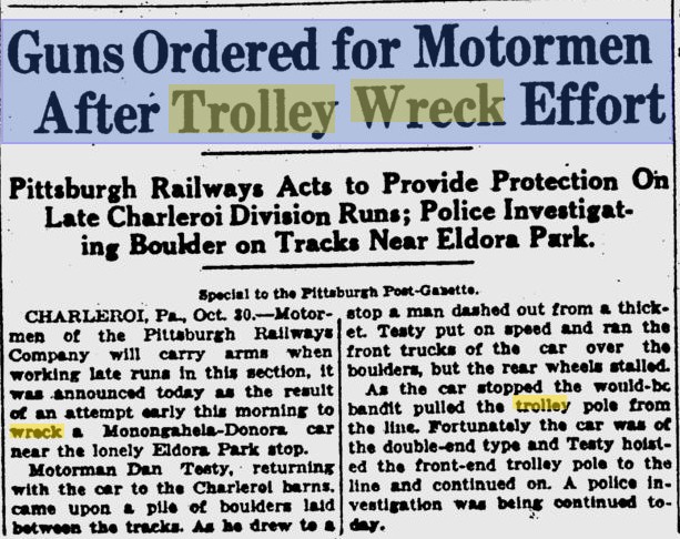 >>> This email started with a discussion of an Oct.1931 robbery on Pittsburgh