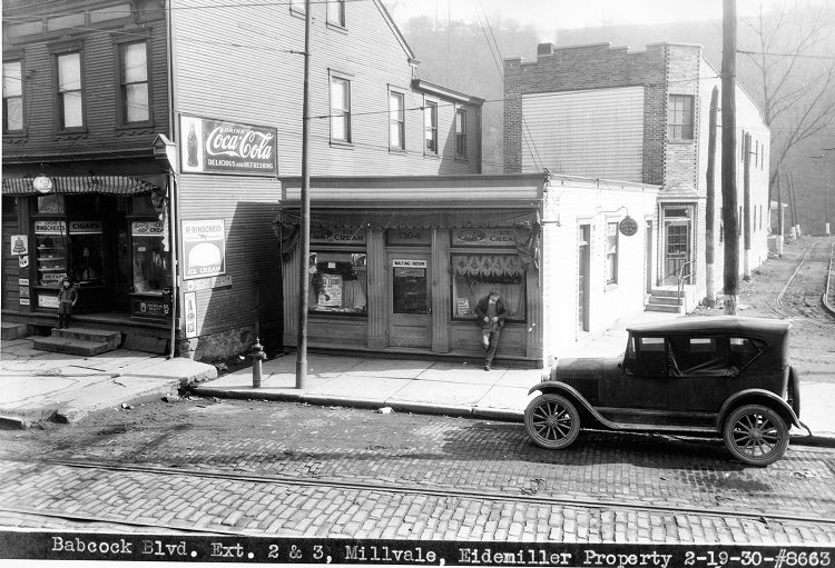 This is also from Historic Pittsburgh. Description is Babcock Blvd., February 19, 2013. Check out right-side of photo. I think that is the Millvale Loop. I'm thinking the trackage in the street was the planning of an extension to Evergreen.
