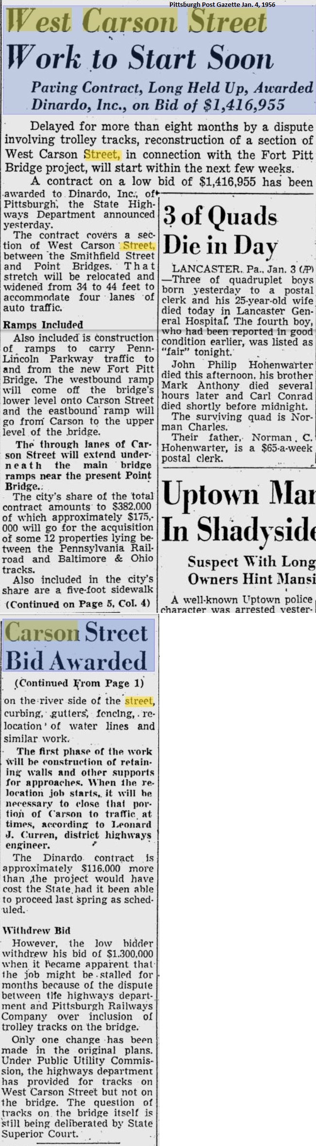 The article attached, from the Pittsburgh Post Gazette, is from the January 4, 1956 issue.