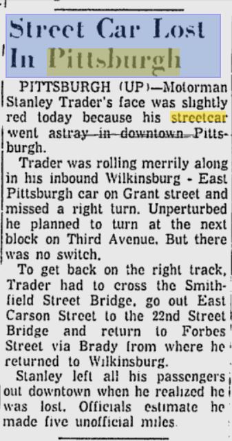 What would a Wilkinsburg / E-Pgh. car be doing on Grant in the first place?