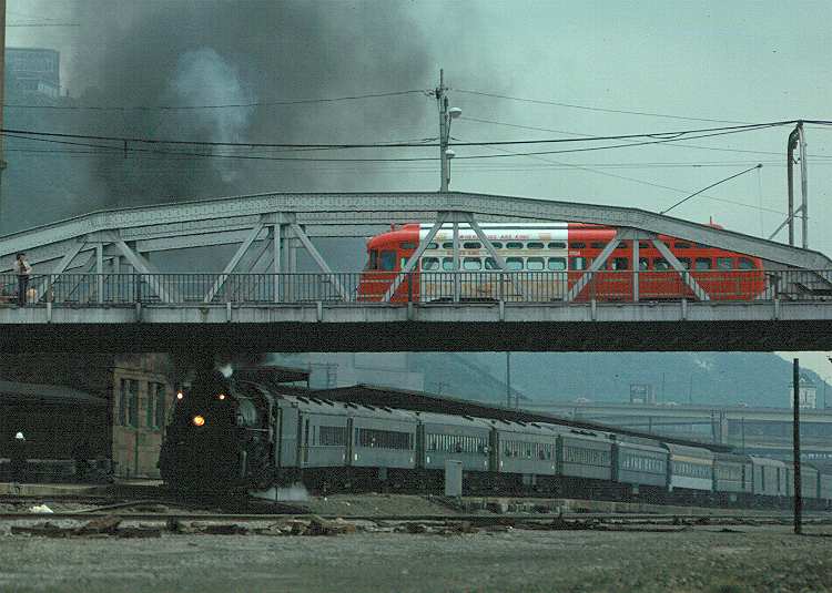 - Leaving the P&LE station on 9/20/75, with PAT 1704 on the Smithfield St. Bridge.