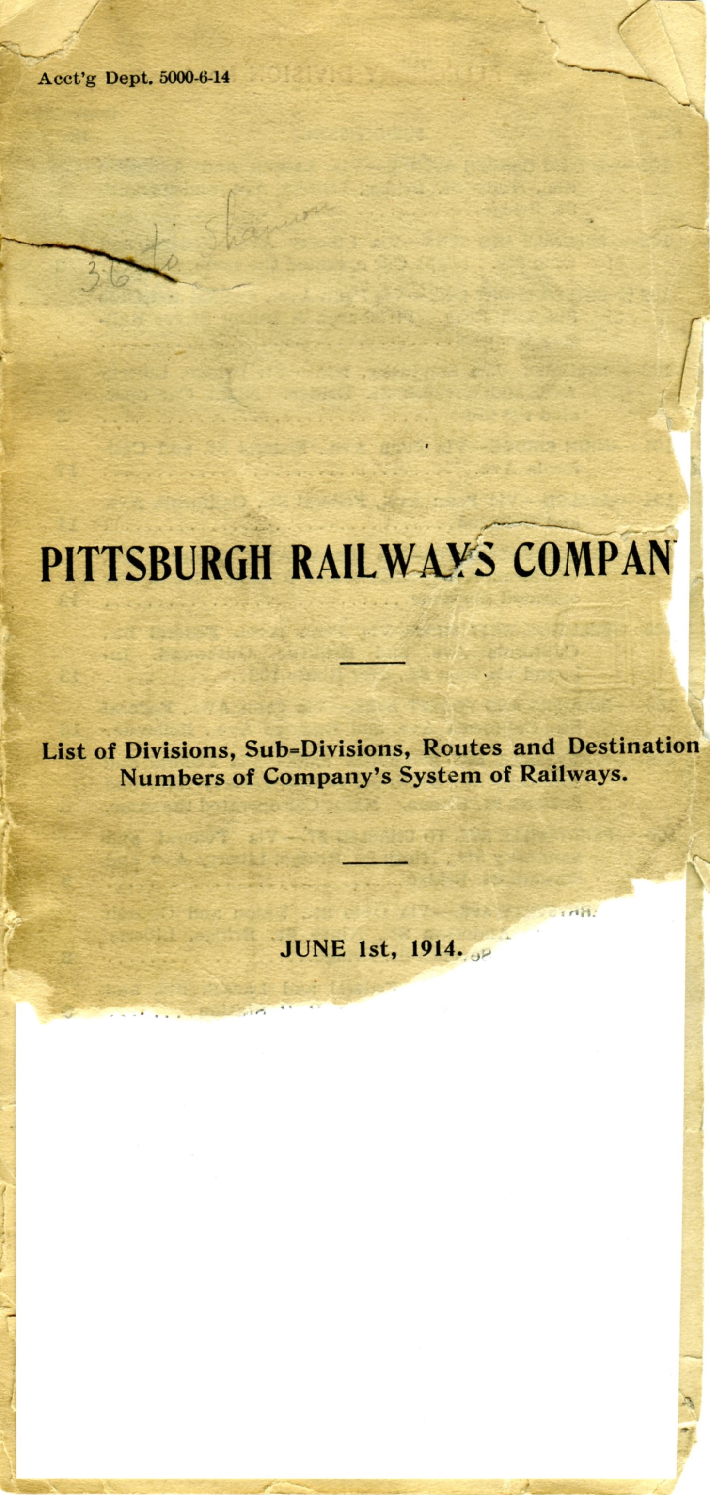 > Concerning discussion on date of introduction of PRC destination route numbers: From PRC accounting dept - 1914; courtesy John Baxter