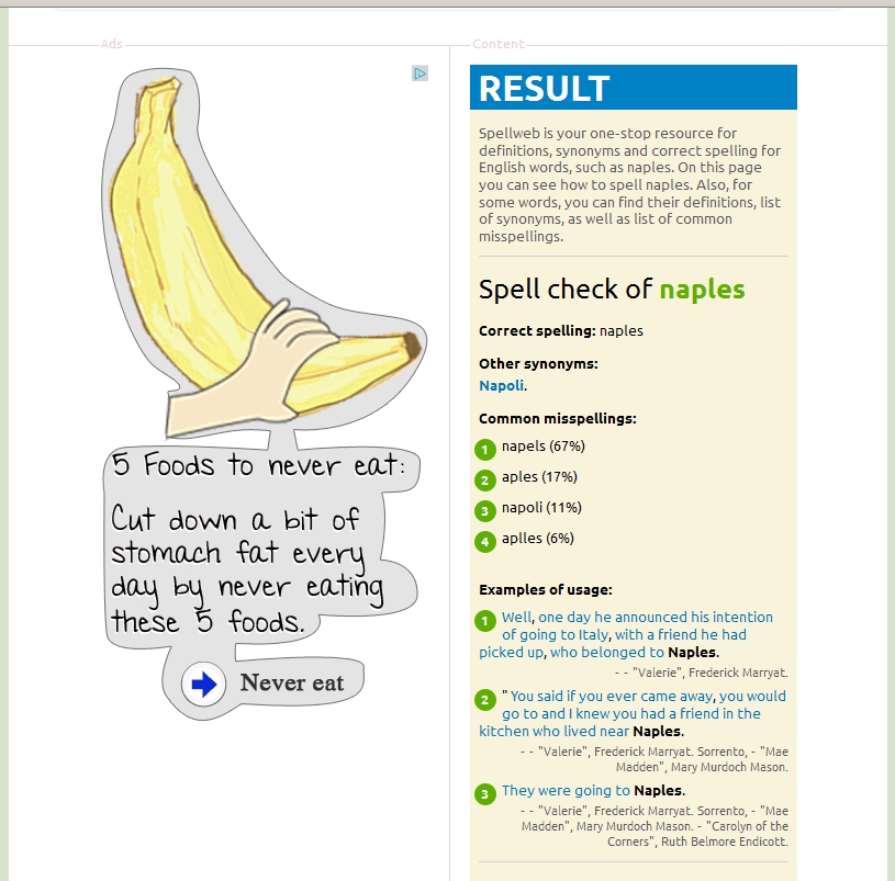 In the following Url "Napoli" is listed as a misspelled word isn't it (and your rail banana is on this page if it displays as it did for me:)