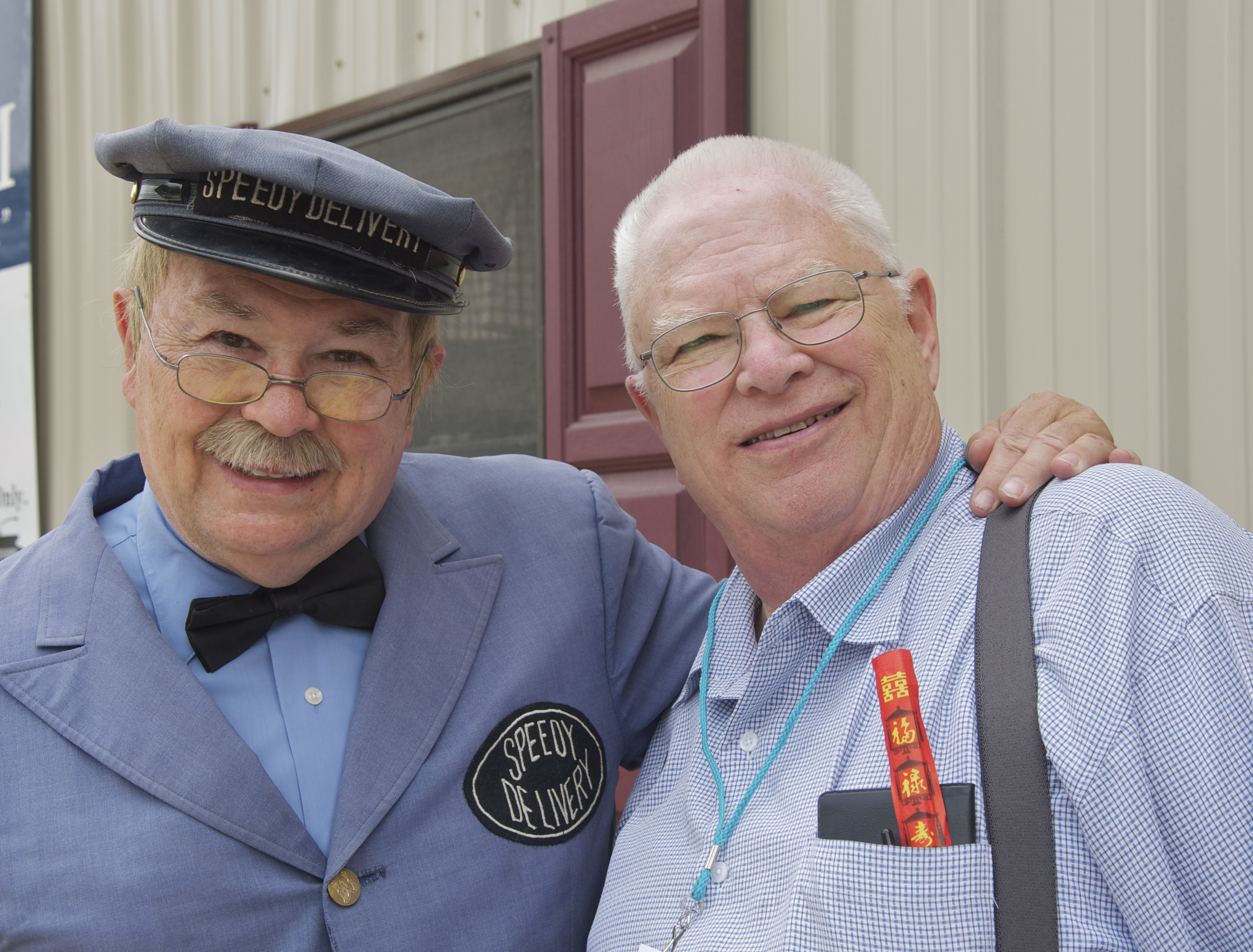I never met him but I did meet the chap who is carrying on the dream. Of course the grinning bald guy with the left over chopsticks in the pocket is moi … David Newell is the guy who played Mr. Speedy Delivery on Fred Rogers and now puts together Daniel Tiger's Neighborhood.