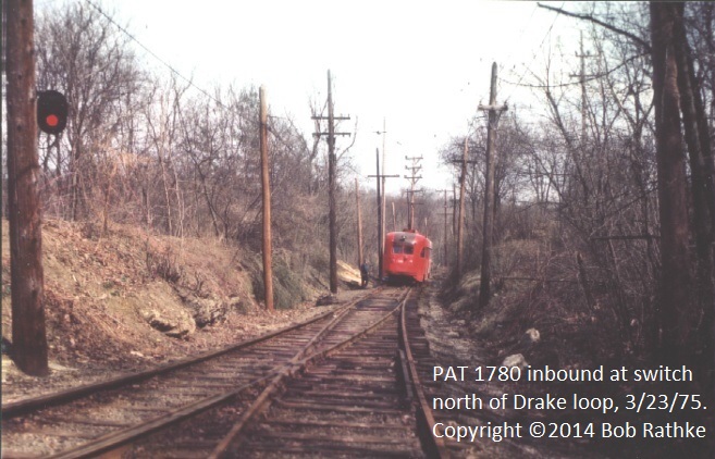 Here's a photo I took on 3/23/75 while out for an afternoon of walking along the Route 36 ROW. Location is the mainline switch just north of the Drake loop. Note the worker and pile of timber along the tracks to the left of 1780 - probably tie replacement in progress.