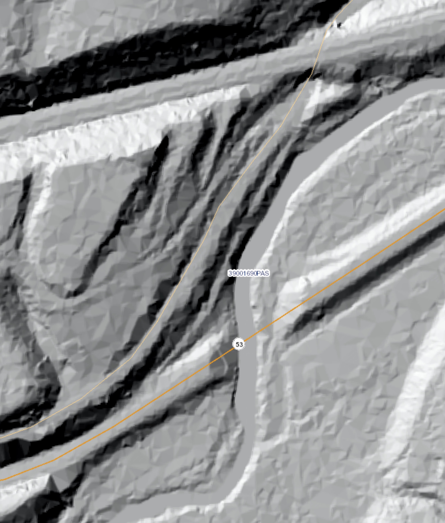 >> See also the attached snippet of the LIDAR hilllshade visualization.